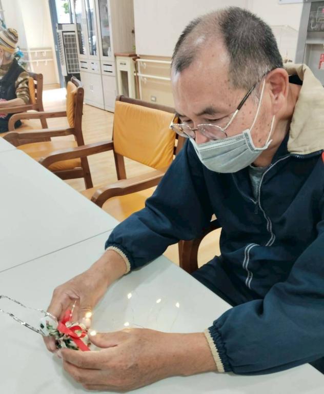 活動尾聲,志工和工作人員一起陪伴長輩完成「暖光聖誕幸福燈球」手作;當柔和燈光緩緩亮起,映照出長輩專注又溫柔神情,現場多了一份靜靜流動感動;這盞小小燈球,不只是聖誕裝飾,更象徵陪伴與祝福,溫暖長輩的心。