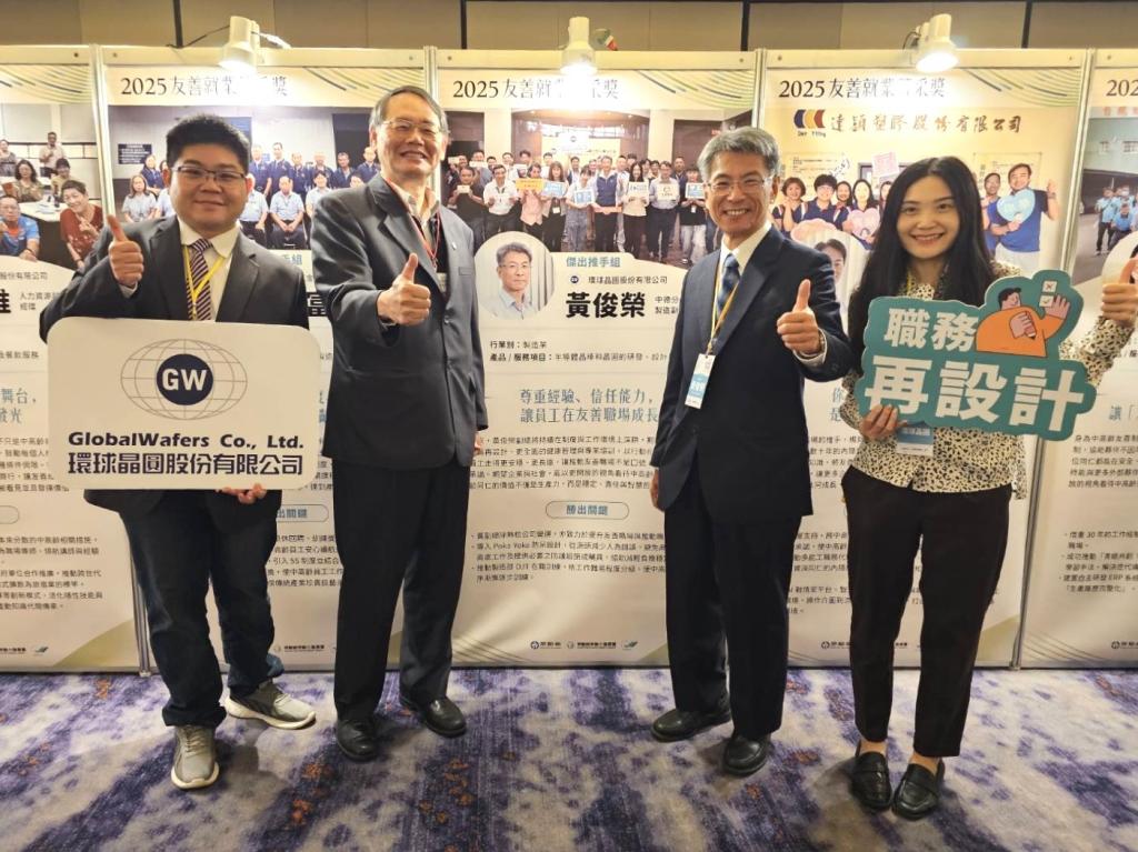在「職務再造組」,實耐格科技與碩陽電機長期投入職務再設計,從流程優化、輔具導入到工作條件改善,均有效協助中高齡員工排除工作障礙、提升效率,展現企業以人為本的承諾;「傑出推手組」則由達穎塑膠楊賀盛特助與環球晶圓黃俊榮製造部副總獲獎,達穎塑膠透過制度優化與多元關懷措施,讓銀世代員工留任率達到 100%;環球晶圓則以 QCC 改善、I-Care 提案平台及人因工程強化,自動化設備導入等措施,全方位提升中高齡員工作的安全與品質。