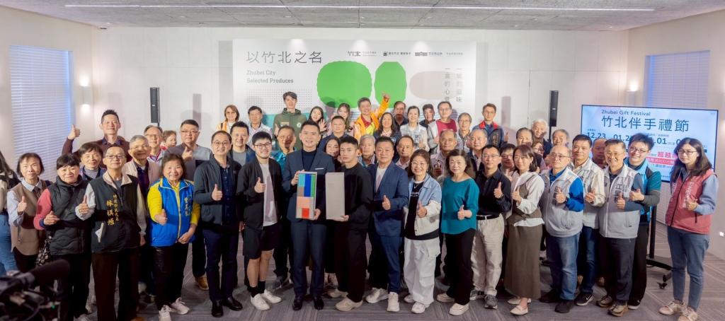 為推廣竹北在地特色產業,竹北市公所今年持續推出「竹北伴手禮」,今(12/23)日在竹北市長鄭朝方、竹北市民代表會主席林啟賢以及多位代表、里長等出席下,共同宣布活動正式開跑,透過消費串聯、設計加值,讓更多在地好物被看見、被帶走。