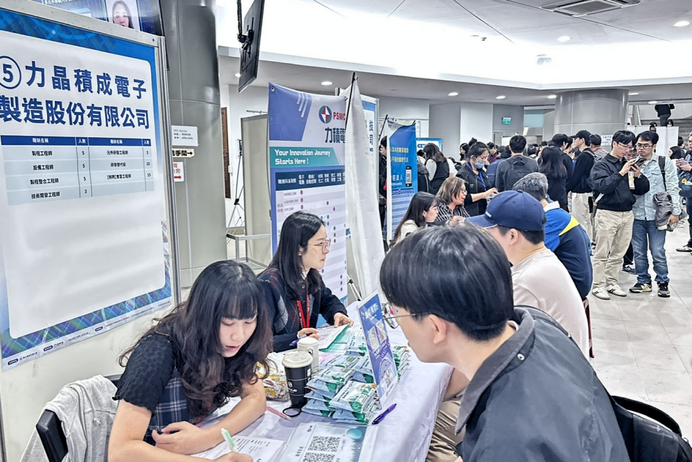 ▲勞動部桃竹苗分署與陽明交大今天於「半導體與重點科技產業人才發展基地」舉辦成果發表,吸引力積電、頎邦科技、緯創資通、智邦科技等多家知名大廠到場徵才,提供619個第一線工程師的職缺,最高薪資達6萬,平均薪資4萬以上。(圖/桃竹苗分署提供)
