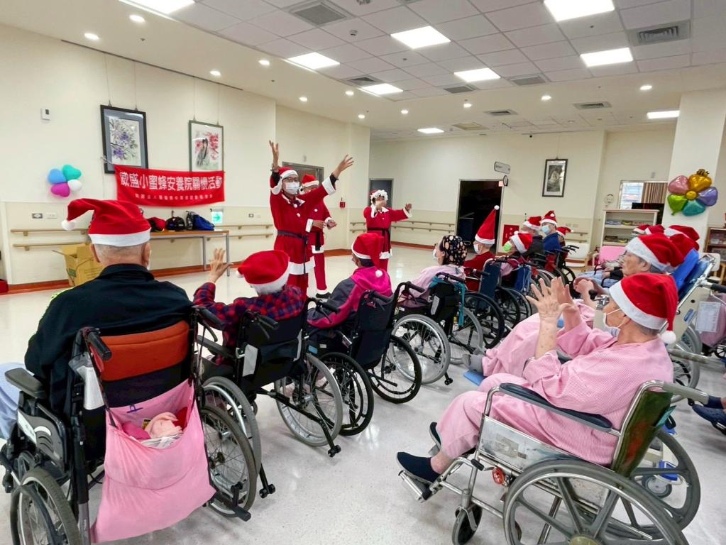 【勁報記者于郁金/嘉義報導】聖誕節溫暖與歡樂,在臺中榮總嘉義分院附設護理之家熱鬧展開;護理之家特別在聖誕前夕,舉辦「聖誕佳節-溫馨送幸福」活動,邀請長輩們一同迎接節日氣氛;現場布置應景,長輩與工作人員戴上聖誕帽,伴隨歡笑聲與歌聲,大廳洋溢溫馨喜悅;此次活動由嘉榮護理部李金霞副主任帶領護理之家團隊策劃,並邀「威盛信望愛基金會」,結合社區資源與多元信仰,共同為護家內榮民(眷)及長輩住民帶來幸福節日互動與歡樂時光。