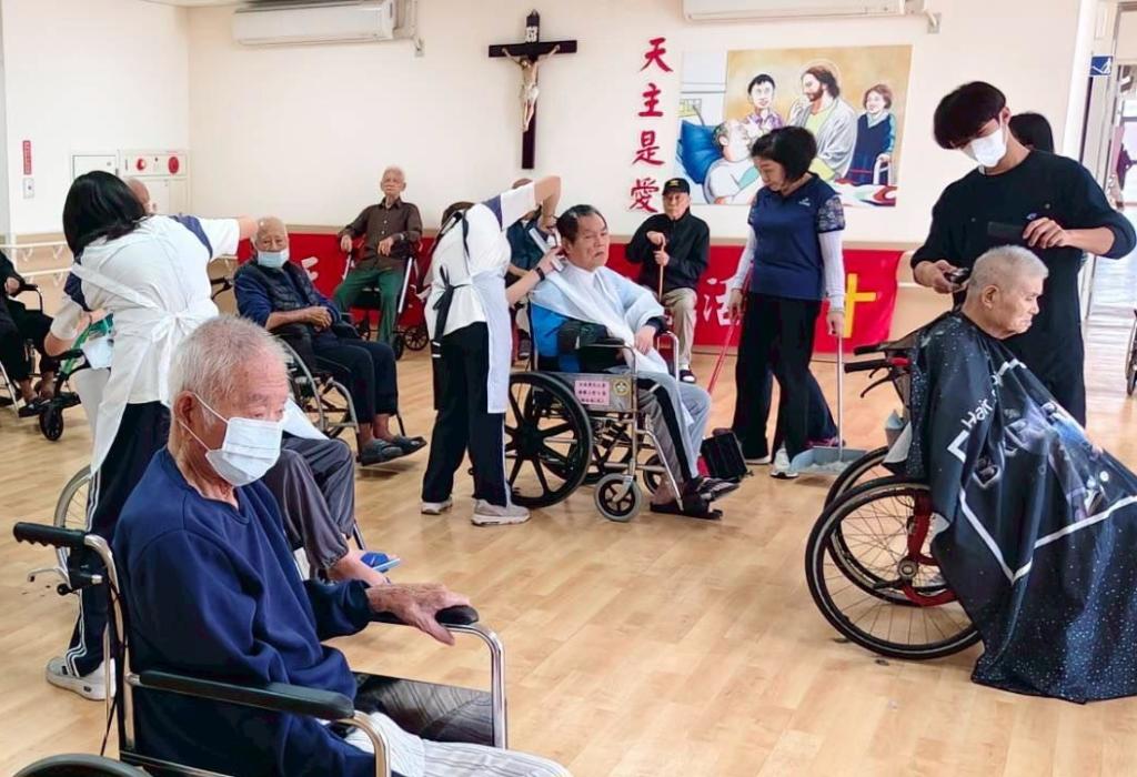 這場充滿溫度義剪活動服務160餘位住民長輩,涵蓋安養、養護與樂智等各堂區住民,專業設計師們帶來精湛手藝,並細心詢問長輩們理髮需求,而長榮女中學生們也展現出青春熱忱,不時與長輩親切互動,現場充滿歡樂與溫馨氣氛。