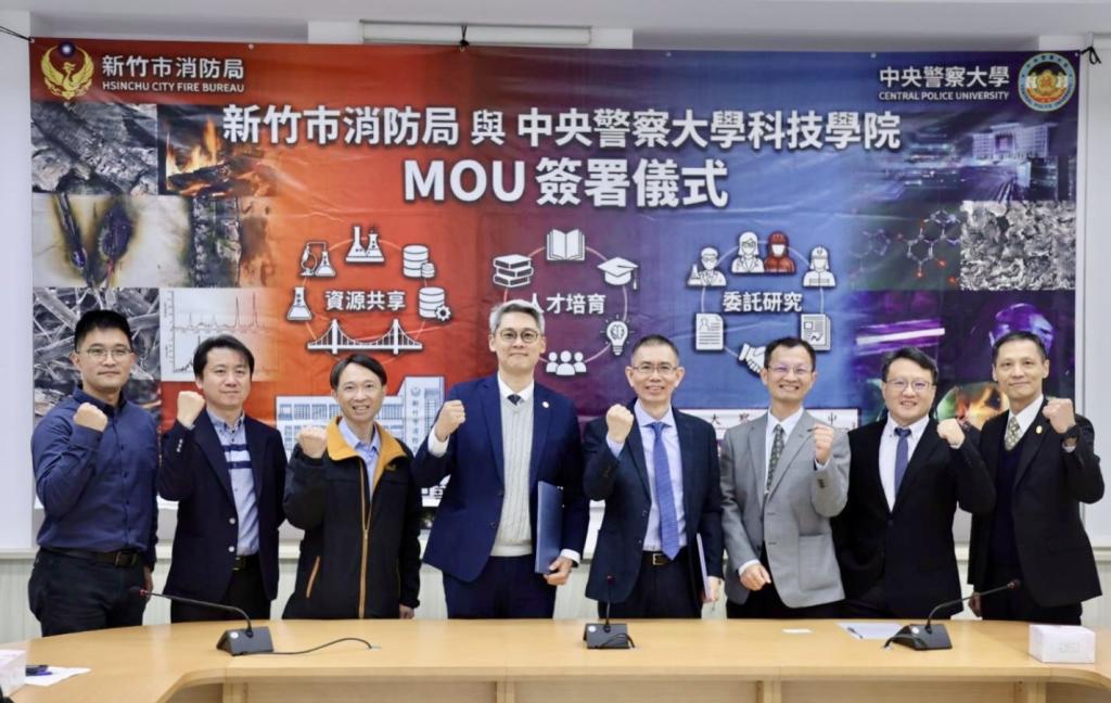 為全面提升火災調查技術與縱火犯罪偵查效能,新竹市消防局日前於中央警察大學與警察科技學院正式簽署合作備忘錄(MOU)。由消防局副局長陳家慶與警大警察科技學院院長吳貫遠代表雙方簽約,宣示將透過「資料共享」、「人才培育」及「委託研究」三大面向進行深度合作,也象徵竹市火災調查工作正式邁入官學合作、科技深化的新紀元。