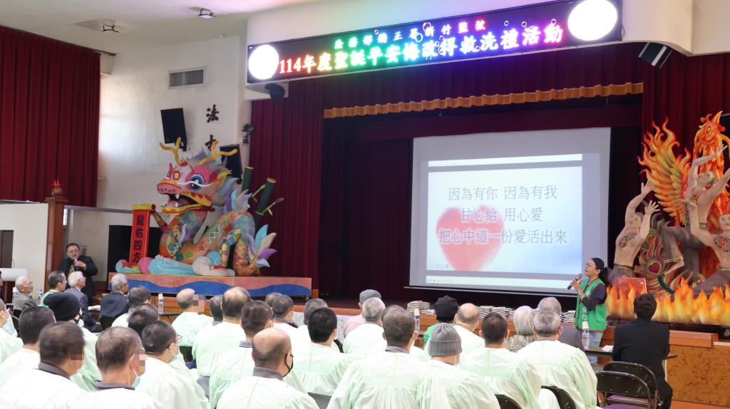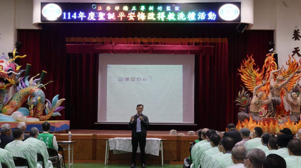 法務部矯正署新竹監獄113年12月23日於大禮堂舉辦「聖誕平安悔改得救洗禮活動」,由基督教更生團契新竹區會林立牧師率領多位牧師群與教會弟兄姊妹蒞臨。