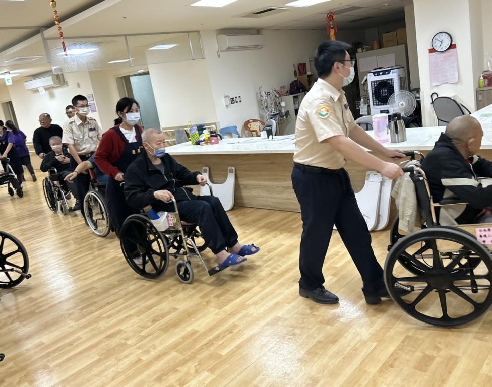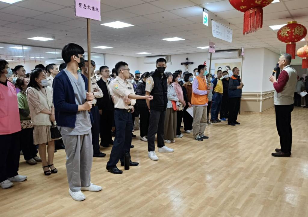 榮家說明,本次演練模擬夜間突發火災情境,演練流程包含確認火災警報訊號、派員查證現場、即時通報、執行初期滅火、引導住民避難疏散,並同步進行防火區劃管制,關閉防火門、限制人員進出,以防止火勢與濃煙擴散;同時透過夜間緊急召回機制,迅速補充必要人力,並彙整火災位置、燃燒狀況及住民疏散情形,提供消防機關完整即時資訊,以利後續救災作業。
