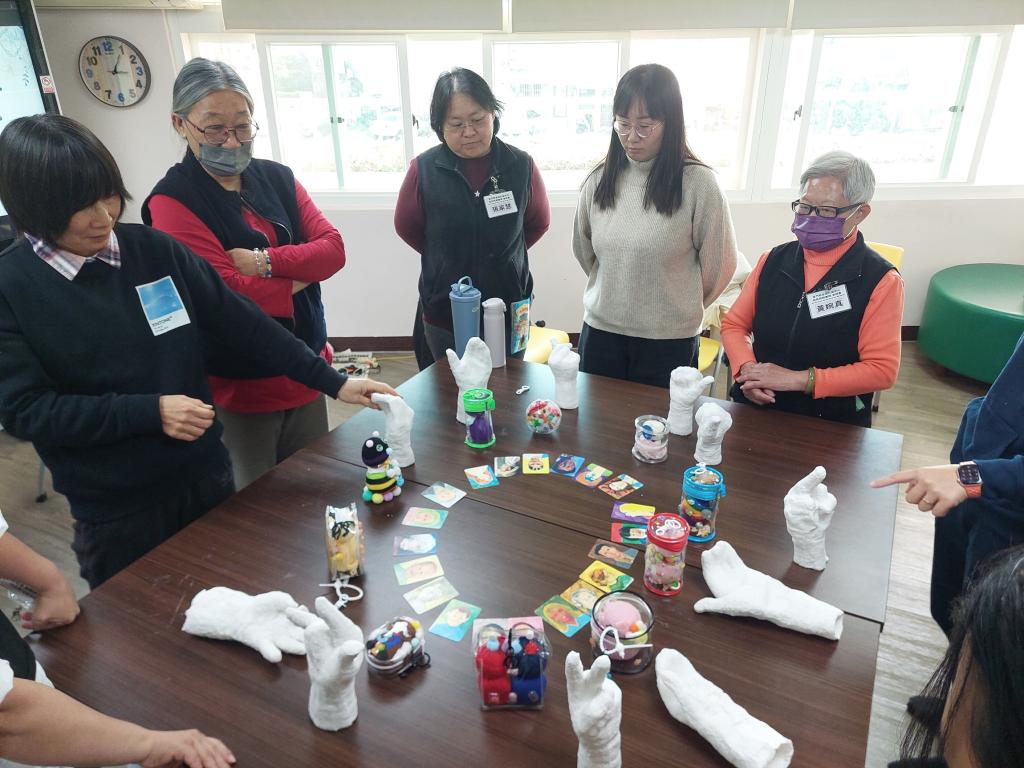 社會處說明,團體規劃內容包含:「我和我親愛的身體」、「自我照顧法寶」、「自我激勵」及「完整的我」等主題,結合身體覺察引導、正念練習與多項手作創作,如正念星星之花、石膏手模及襪娃製作等,引導成員透過創作歷程表達內在感受,並將抽象情緒轉化為具體可見作品,作為日後提醒自己持續自我照顧象徵。
