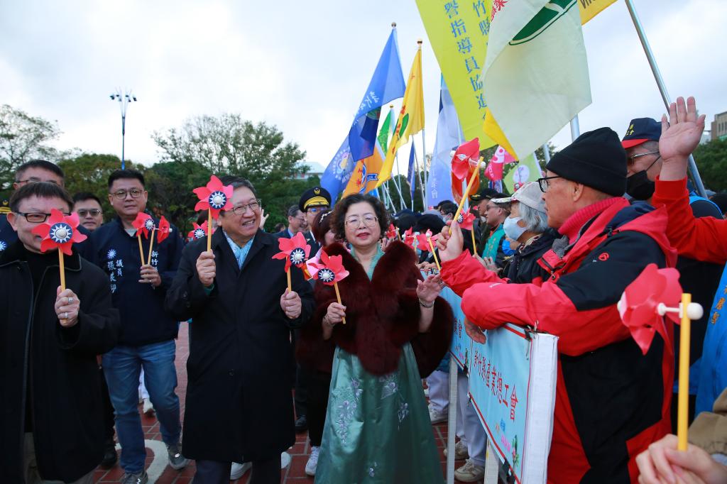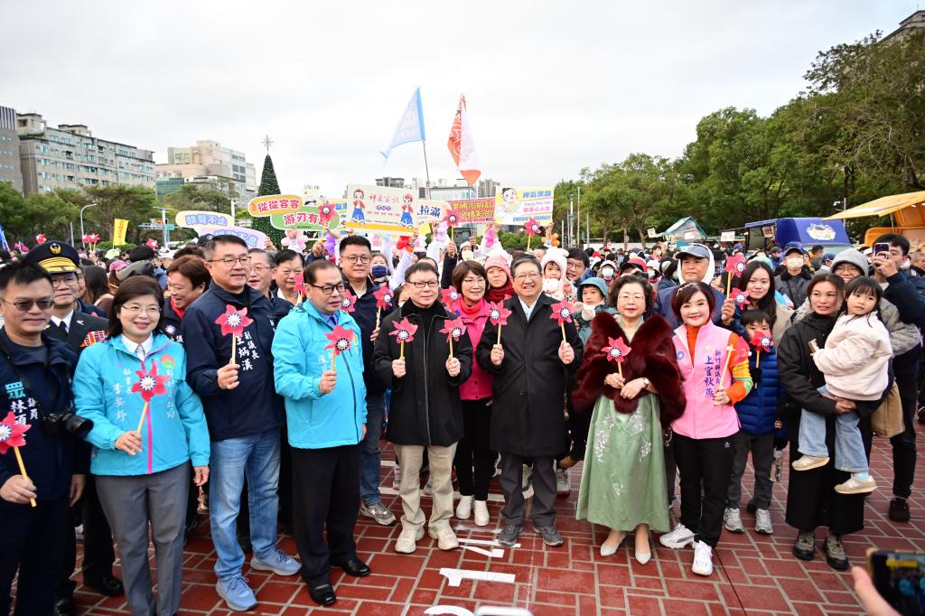▲竹縣府於今(115)年元旦於府前廣場舉辦元旦升旗典禮,吸引數千民眾同場欣賞,楊文科縣長伉儷一同向在場參加元旦升遊的民眾親切問安。(圖/竹縣府提供)