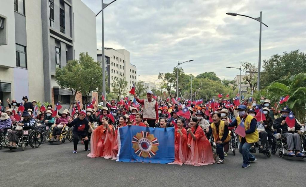 參加住民伯伯情緒高亢,精神抖擻;一曲〈中華民國頌〉氣勢磅礡,及揮舞小國旗的〈我愛中華〉,交織成中華民國115年1月1日元旦,讓中華民國萬歲、萬歲、萬萬歲。