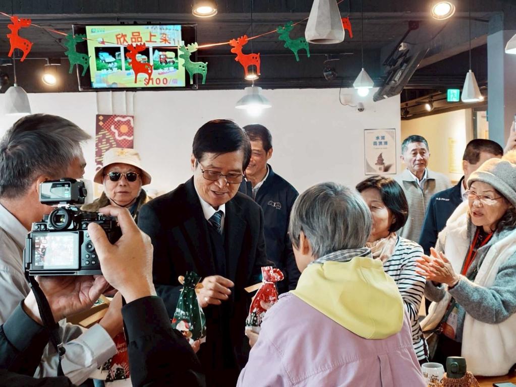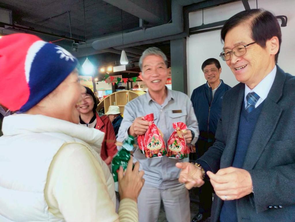 機緣正巧,當住民長輩們來不及驚豔時,巧遇輔導會大家長嚴德發主任委員蒞臨欣欣水泥觀光工廠,住民十分開心巧遇主任委員、或是拍照、或是話家常,長輩們開心得雀躍,新年順利聲連連,嚴主委親切問候及關心,讓住民拍手叫好。