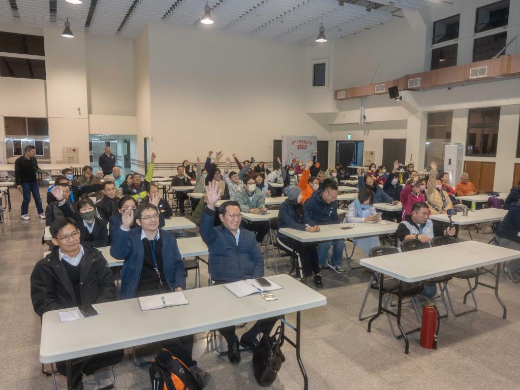 ▲竹市府辦理13場次高層集合住宅住戶防災宣導,首場防災宣導今(1/8)日晚間在身心障礙者就業綜合大樓登場,現場有獎徵答活動,民眾踴躍搶答。(圖/竹市府提供)