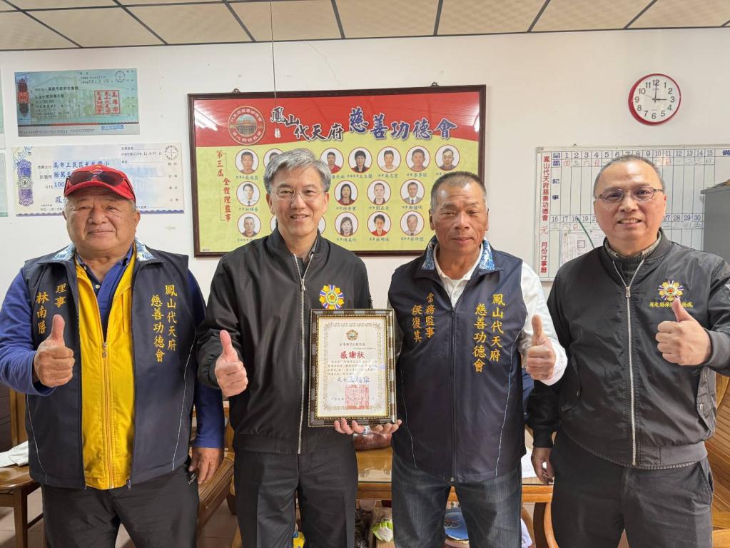 此次捐贈活動由鳳山代天府慈善功德會發起,因考量基層弱勢家庭生活壓力,特別準備包括優質白米、食用油及各項民生用品等物資;此外,更有不具名善心人士慷慨解囊,提供超市禮券,指定發放予屏東地區榮民遺孤,希望讓學子們在求學與生活上能獲得實質補貼。