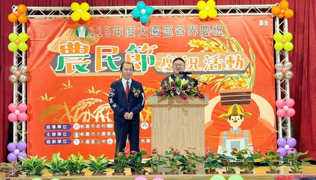 桃園市大園區各界慶祝農民節大會活動今(1/13)日隆重登場,桃園市副市長蘇俊賓出席並頒發傑出專業農民、傑出畜牧推廣農民及傑出青年農民等獎項,表揚農友長期投入農業發展的卓越貢獻。蘇俊賓表示,大園區擁有玉米、台農57號及66號甘藷、西瓜、香瓜及蕎麥等多項特色農產,大園區農會不僅生產優質農產品、培育專業農民,在農會金融服務與農產行銷推廣方面也持續深耕,成果有目共睹。