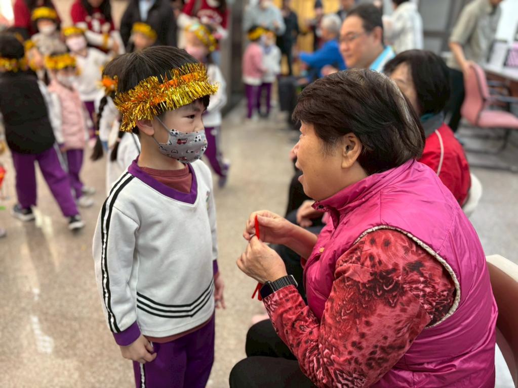 除了拜年表演外,小朋友們也親手將精心製作的新年小禮物送到榮民(眷)爺爺奶奶手中,傳遞滿滿的祝福與心意。小小的禮物承載著大大的關懷,不少長輩感動地緊握孩子的手,場面溫馨感人,充分展現老幼共融的美好畫面。