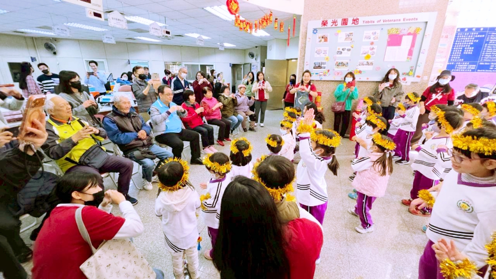 活動現場洋溢著濃濃年味,孩子們用稚嫩又響亮的聲音,說著一句句吉祥拜年話,並搭配活潑可愛的動作及生動歌舞表演,祝福爺爺奶奶馬年行大運、身體健康、福氣滿滿。童言童語與歡笑聲此起彼落,嗨翻全場,讓榮民(眷)長輩們彷彿回到兒孫繞膝、含飴弄孫的幸福時光,臉上不禁露出燦爛笑容。