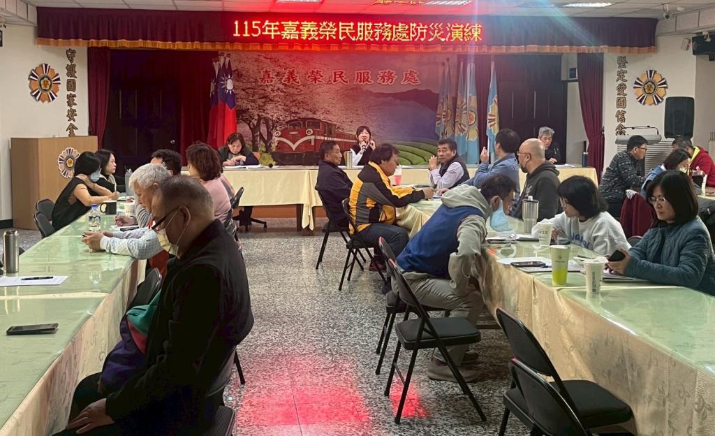 本次演練內容涵蓋廣泛,特別模擬嘉義縣、市轄區遭受颱風、水災、火災及地震等各類天然災害時緊急動員與處置;演練過程中,服務團隊模擬如何迅速在災害發生前啟動聯繫網絡、協助進行預防性撤離,災害發生時掌握受災區域、清查受災榮民眷名單,災後協助榮民眷住家復原及關懷慰問等各項程序,提升團隊即時反應能力。
