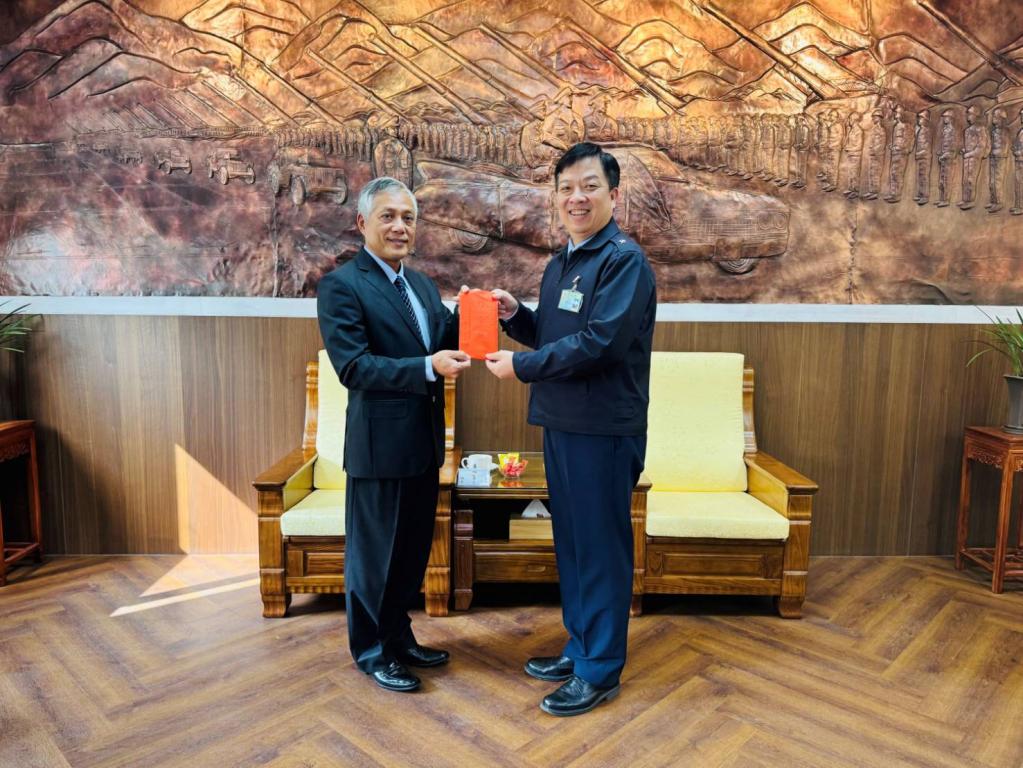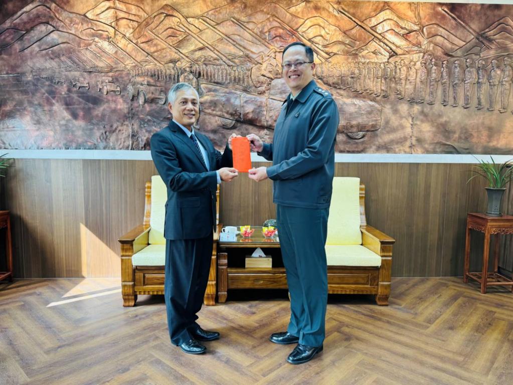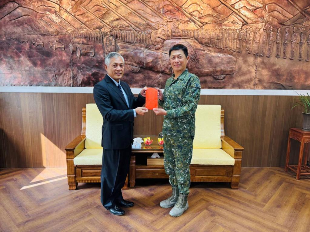 【勁報記者于郁金/臺南報導】台南市進出口商業同業公會理事長蔡志光19日率領敬軍團,在台南市軍人服務站站長劉可雲陪同下,前往關廟湯山營區慰勞陸軍砲兵訓練指揮部、空軍第一戰術戰鬥機聯隊、臺南後備指揮部等3單位官兵,除慰勉官兵們執行戰備任務及教育訓練辛勞,同時致贈春節慰勞金,感謝國軍官兵們在春節期間為國盡忠、為民服務奉獻精神。