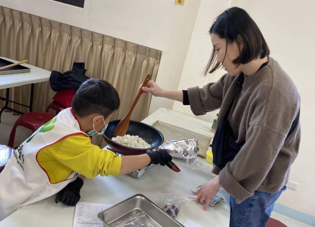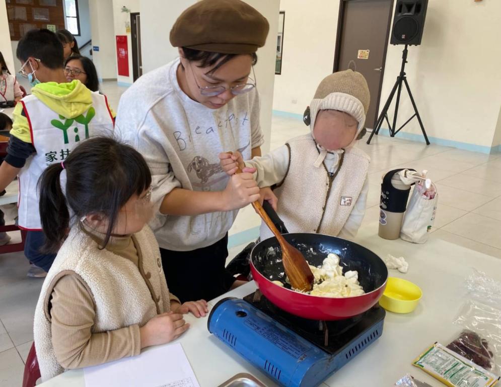 為使活動進行更加順暢,家扶亦特別邀請參與課輔班家扶受助學童擔任活動小志工,協助雪Q餅製作流程及陪伴幼兒互動。