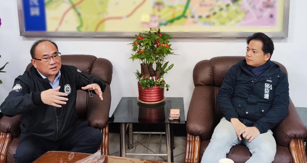 ▲竹市副市長邱臣遠(右)前往竹市警察局視察,與竹市警察局局長陳源輝(左)了解現金清點、分裝及後續發放之模擬作業。(圖/竹市警察局提供)