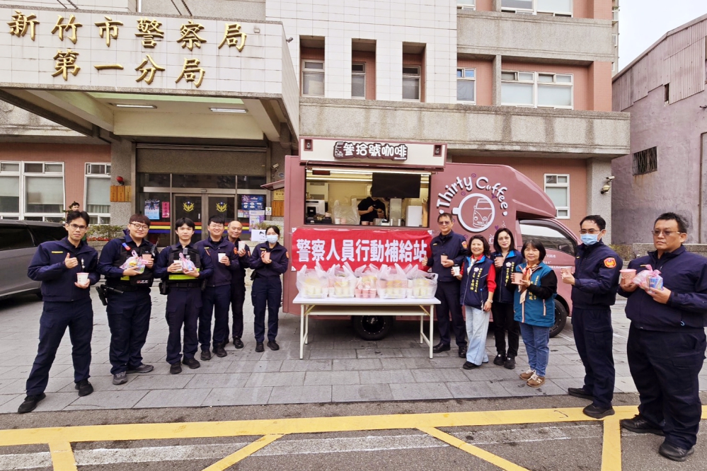 ▲竹市消費金實體發放!警察局第一分局前設有警察人員行動補給站,慰勉辛勞警察及市府同仁。(圖/竹市府警察局提供)