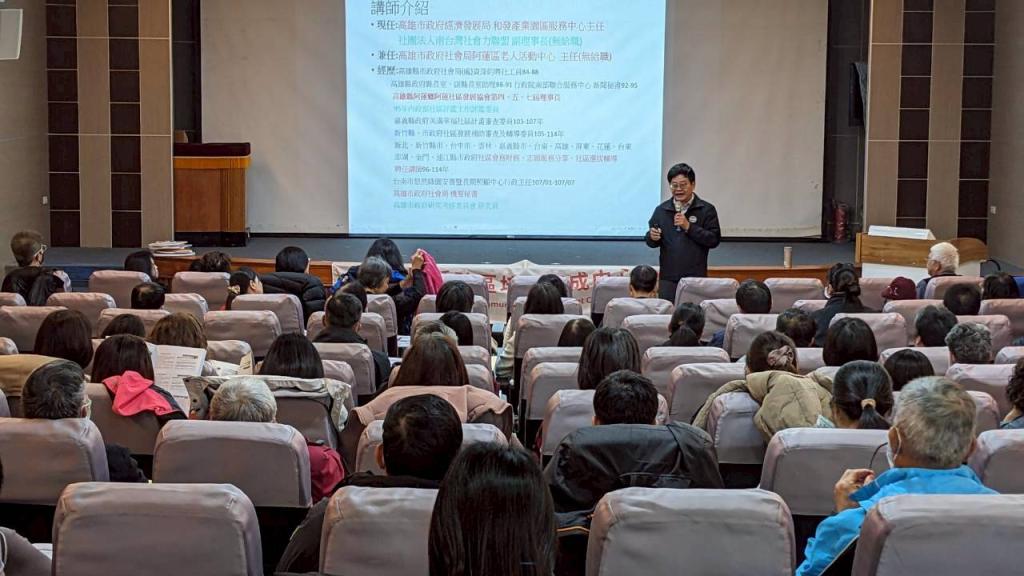 課程特別邀請具備豐富社區實務與政府經驗「潘怡璋主任」授課,潘主任現任高雄市政府經濟發展局產業服務中心主任,曾任高雄市政府社會局機要秘書、行政院南部聯合服務中心新聞秘書、社區發展協會理事長等職,長期投入社區發展、志願服務與老人照顧等領域,經驗深厚。