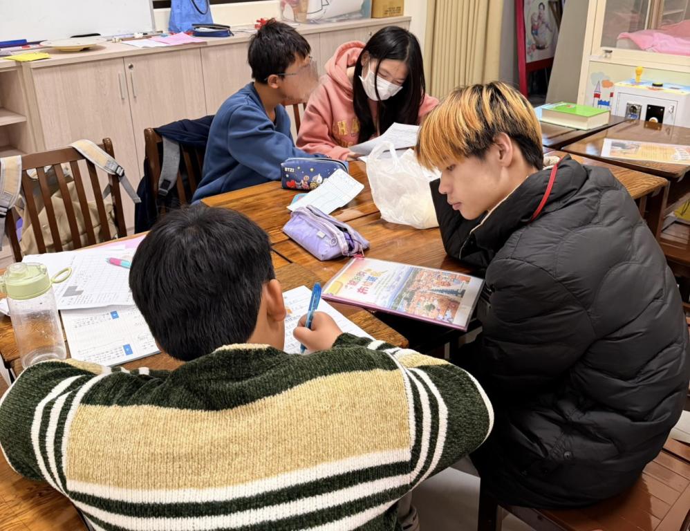 金門家扶寒假生活營由洪哲偉社工規劃設計,自上午8時起提供照顧與陪伴服務,每日安排固定作息,並透過志工大哥哥、大姐姐陪伴,協助兒少完成寒假作業,建立學習節奏,避免寒假期間作息混亂或長時間獨處情形。