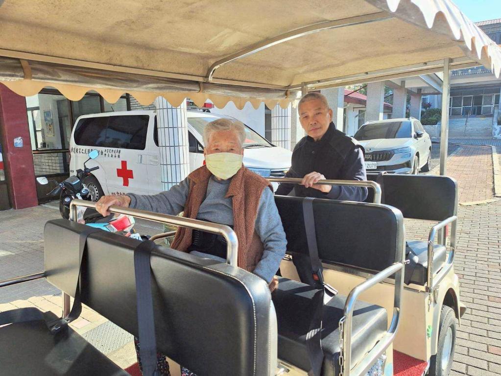 榮家說明,住民欲看診或各活動地點等,可透過平穩舒適電動接駁車 ,不僅減輕長輩步行負擔,也鼓勵住民走出寢室、親近自然,促進身心健康與生活品質,讓家區成為兼具醫療照護與休閒療癒友善空間。