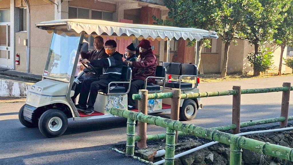 【勁報記者于郁金/臺南報導】為提升住民生活便利性與行動安全,營造友善、舒適居住環境,白河榮家規劃並運用高爾夫球電動車提供住民家區內遊園及看診接送服務,讓長輩在安全無虞情況下,輕鬆往返保健組就醫及動物園巡禮,同時悠閒欣賞家區優美景觀,感受愜意生活。