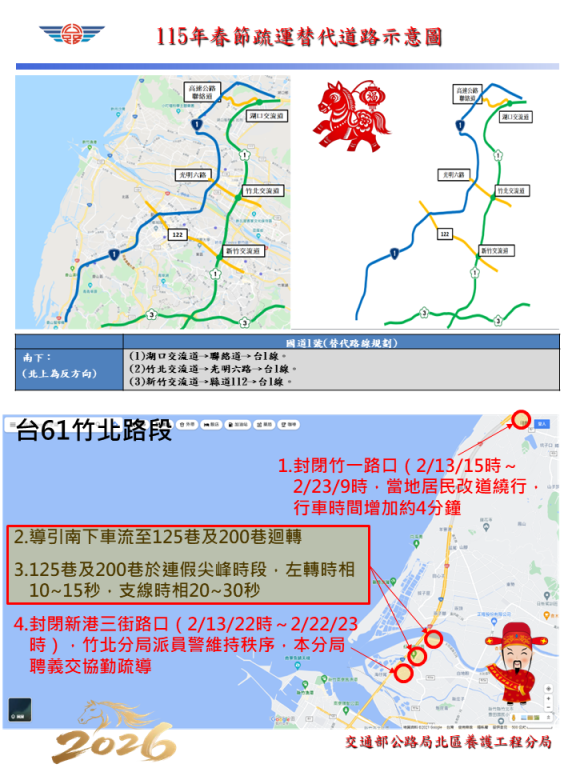 ▲115春節疏運替代路線懶人包。(圖/公路局北區養護工程分提供)