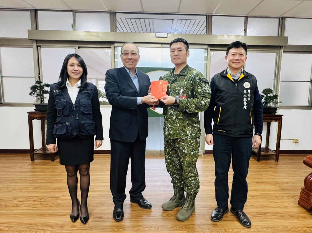 【勁報記者于郁金/臺南報導】春節將屆,為表達對國軍官兵長期戮力戰備訓練,保家衛國辛勞肯定與感謝,臺銀人壽專屬保代軍友保險公司敬軍團由總顧問歐復興率領總經理黃秀芬,及所屬國軍急難慰助慈善協會理事長黃開森、副理事長陳育琳等,在軍人之友社台南市軍人服務站站長劉可雲陪同下,前往陸軍203旅、陸軍137旅實施慰問,並致贈敬軍慰問金。