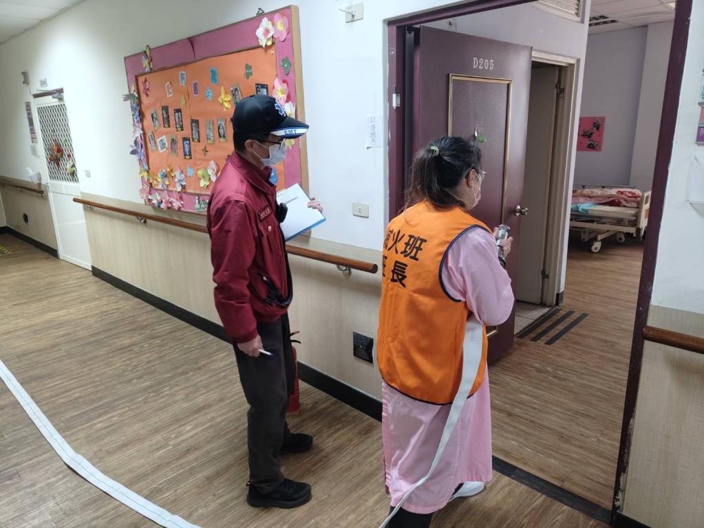 本次演練模擬場所內部發生火災事故,濃煙迅速擴散,工作人員隨即啟動自衛消防編組機制,依序完成起火點確認、內部通報、初期滅火及避難引導等應變作為,並引導住民有序疏散至安全區域避難;藉由實際演練,使機構人員熟稔火災發生時的應變流程,提升災害初期處置效率,降低風險,確保住民安全。