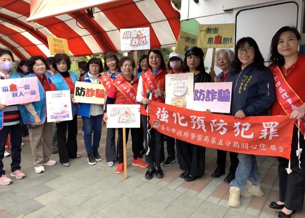 第五分局表示,期盼透過結合公益捐血活動,讓民眾了解常見詐騙手法與防範技巧,並提醒如遇可疑情事可立即撥打110報案或165反詐騙專線,共同營造安心、平安年節環境。(臺南市政府警察局第五分局提供照片)