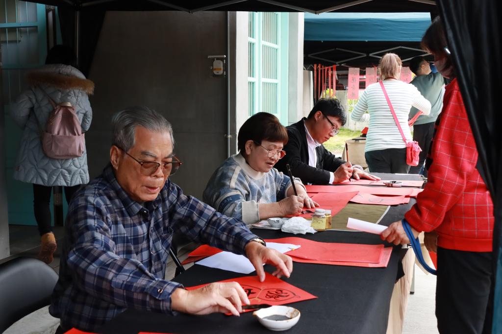 ▲謝瑞煌大師於現場為民眾揮毫春聯作品。(圖/林保署新竹分署提供)