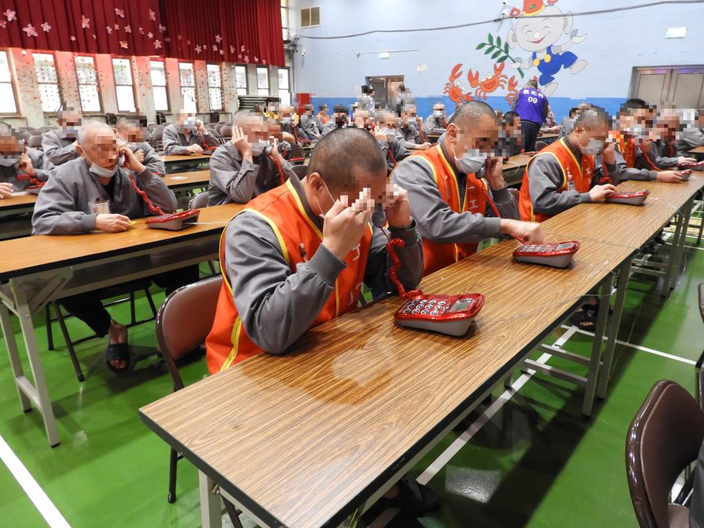 ▲新竹監獄舉辦「春節電話孝親活動」,會場氣氛熱絡溫馨動人,每一位受刑人都可以向親愛的父母和親人表達思念之情。(圖/新竹監獄提供)