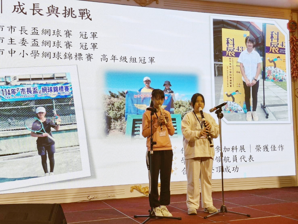 ▲新竹榮服處盛大「迎春納福團圓宴」相見歡暨圍爐活動,學子吳同學(左)在活動中演奏直笛,以音樂傳達對認養人的感謝心意。(圖/新竹榮服處提供)