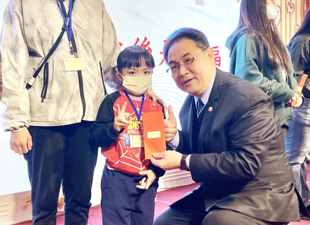 ▲新竹榮服處盛大「迎春納福團圓宴」相見歡暨圍爐活動,新竹榮服處鞠宗顯處長(右)親自頒贈助學金予轄內學子,勉勵學子安心向學、持續精進。(圖/新竹榮服處提供)