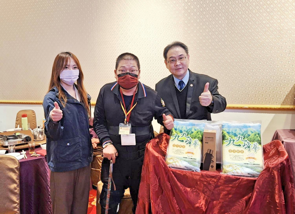 ▲新竹榮服處盛大「迎春納福團圓宴」相見歡暨圍爐活動,新竹市政府民政處施淑婷處長(左)與新竹榮服處鞠宗顯處長(右)頒贈物資予榮民,提前送上溫暖與祝福。(圖/新竹榮服處提供)