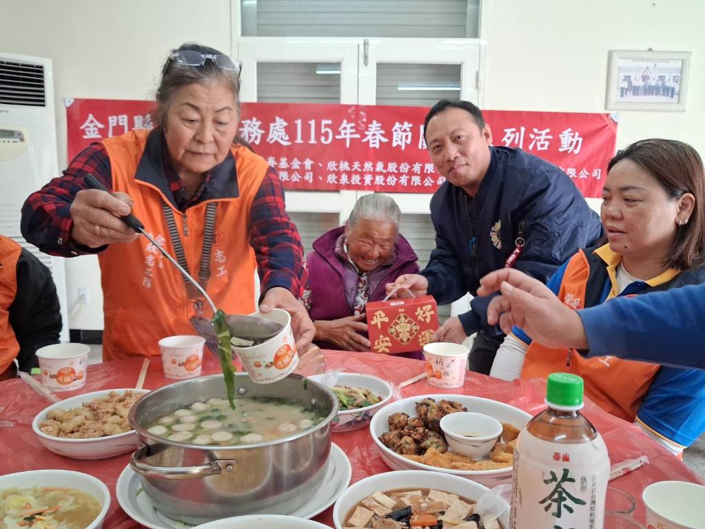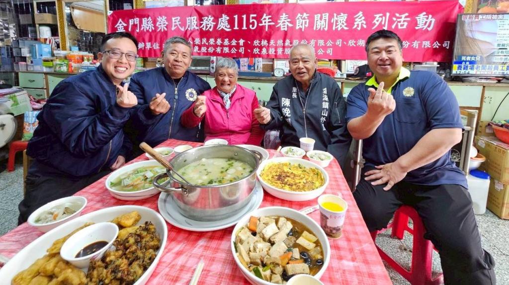 金門榮服處表示,考量部分年長榮民行動不便、親人不在身邊,難以參與團體圍爐活動,因此特別規劃到宅關懷服務,榮服處也分批動員讓全體職員工、與社區服務組長、榮欣志工、鄰托人、里長與鎮代表等親自登門拜訪,不僅致贈熱騰騰年菜,更陪伴長輩一同用餐、話家常,傾聽生活需求,讓長輩在佳節中不再感到孤單。