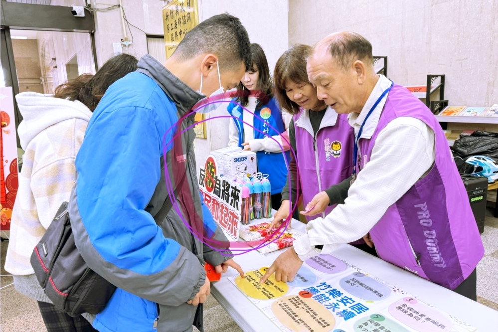▲竹縣府政風處結合文化局及消防局等所屬政風機構於春聯揮毫贈送活動現場設置廉政宣導區,透過寓教於樂的方式深化民眾對竹縣府廉能施政的認同與信賴。民眾熱情排隊參與活動,並和廉政志工們互動。(圖/竹縣府政風處提供)