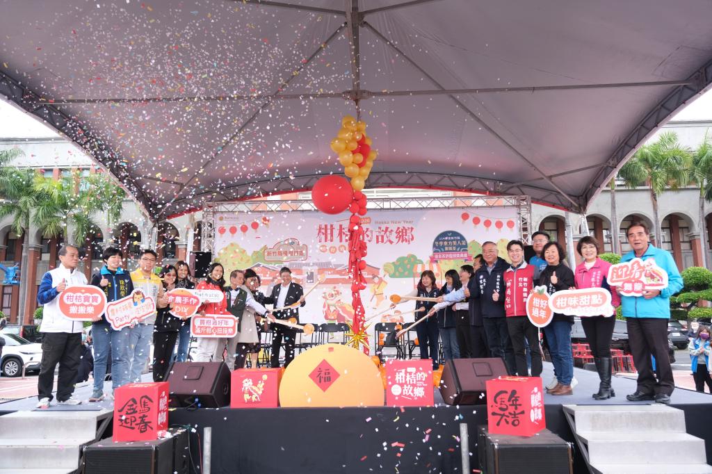 「2026 新竹縣柑桔的故鄉-柑好過年 Hakka New Year」產業文化活動,除了有在地柑桔攤位、農會及特色農產展售,並安排迎春舞龍、傳統手作體驗、趣味競賽、DJ派對及「農村萌星 x 皮皮獅 Party」等節目,歡迎民眾前往共襄盛舉,一同品嚐柑甜滋味、感受客庄年味,並把滿載祝福的春聯帶回家,在歡樂與祝福中「馬上幸福迎豐年」。