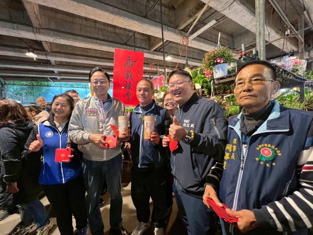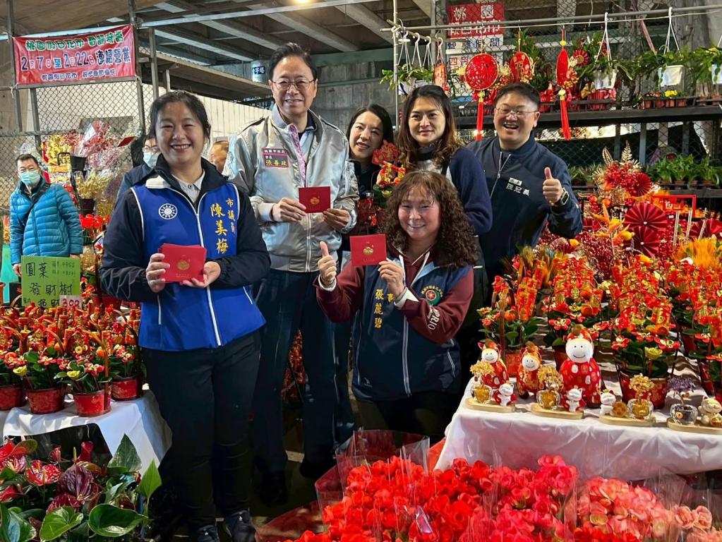 ▲桃園市長張善政出席「市長拜早年—桃園假日花市」,並發送福袋給現場花農及採購民眾,提前拜早年。(圖/桃園市農業局提供)