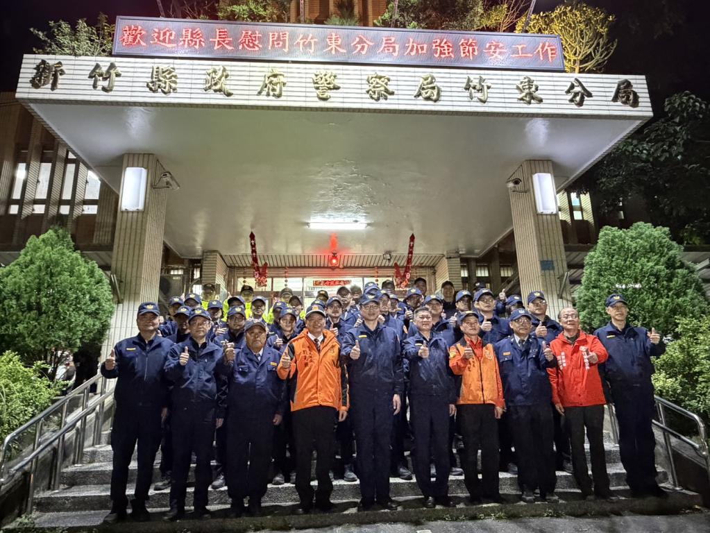 新竹縣警察局115年為期15天的「加強重要節日安全維護工作」於2月9日22時起至2月23日24時止,新竹縣長楊文科偕同新竹縣議會議長張鎮榮,搶先於今(2/9)日下午17時至警察局,頒發慰問金及慰問品給參與安全維護工作警察同仁及義警、民防、義交等協勤民力,感謝他們犧牲與家人團聚的寶貴時間,確保民眾的生命、財產安全。近日寒流一波波來襲,楊縣長除了提醒春安工作同仁注意執勤安全,也要做好保暖。