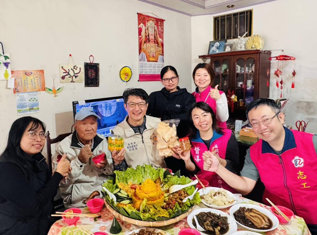 【勁報/苗栗報導】苗栗縣榮服處為營造溫暖祥和年節氛圍,於近日舉行「115年寒冬送暖新春祝福」系列活動,柯長榮副處長偕同榮欣志工及服務團隊前往竹南鎮吳爺爺府上致贈總統春聯,並邀請苗北區新住民家庭服務中心鄭可翊督導共同合作,協助準備具印尼風味特色年菜,透過多元文化交流,讓長輩在年節前夕感受社會各界關懷與祝福。