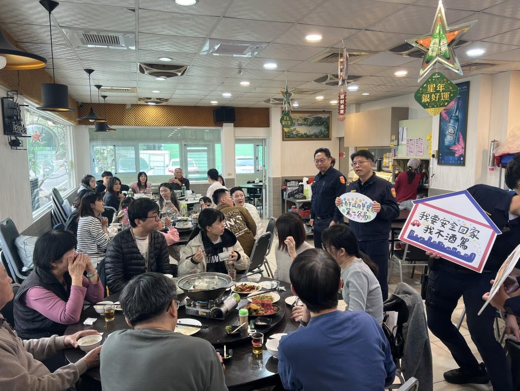 【勁報記者于郁金/臺南報導】歲末年終,臺南市東區各大餐廳擠滿尾牙聚餐人潮,洋溢著豐收喜悅;為讓市民能平平安安過好年,臺南市政府警察局第一分局長章振國近日親自率隊,密集走訪轄區內各大聚會熱點,期盼透過面對面互動,加深市民防詐騙及交通安全意識。