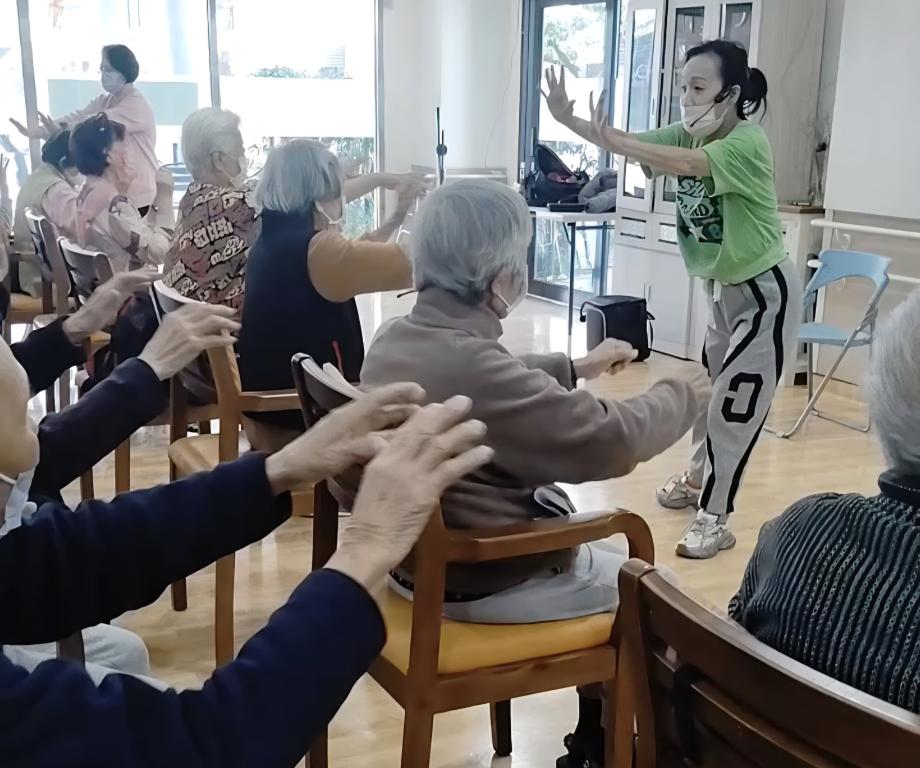 活動採團體方式進行,結合口令引導、示範教學與小組互動,循序漸進帶領長輩完成動作,並由社工、護理師及照服人員全程陪伴,依住民身體與認知狀況彈性調整節奏,兼顧安全性與參與感,讓每位長輩都能安心投入、樂在其中。