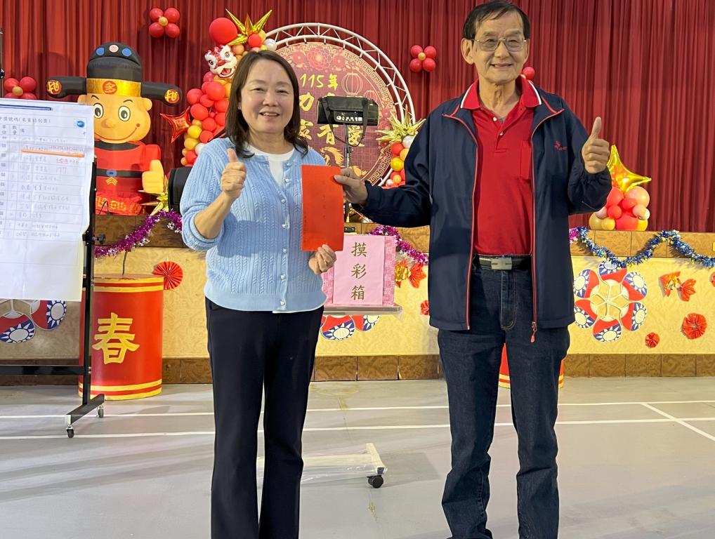 隨後登場的是白河榮家樂團帶來打擊樂演出,熱鬧應景節奏,讓整個會場洋溢濃濃年味;活動最後進入壓軸摸彩階段,由姚主任親自抽出多個現金獎項,將現場氣氛推向最高潮,並在卡拉OK歡唱聲中,為春節聯歡會畫下圓滿句點。