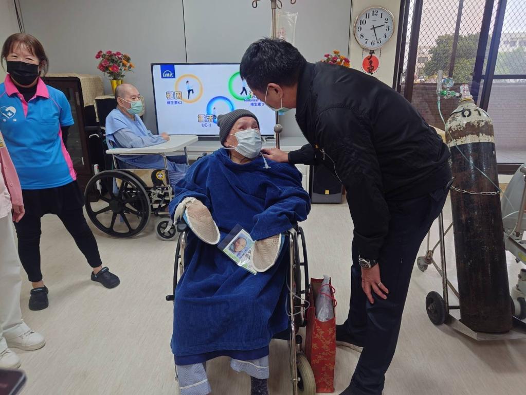 方正處長表示,新年是國人重要節慶,一向重視闔家團圓,對住院長輩而言,內心肯定比一般人更殷切期盼與親友們團圓,榮民前輩們是榮民服務處大家庭一員,因此,榮服處每年三節前,都會特別安排關懷住院前輩,表達關懷;一直以來非常感謝臺北榮總員山及蘇澳分院社工室及醫護、照服人員平日對住院長輩悉心照護,讓長輩們獲得無微不至醫療照顧。(于郁金翻攝/基隆市榮民服務處提供照片)