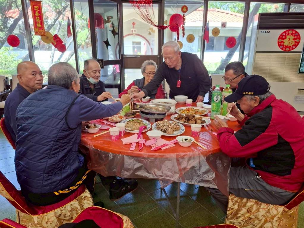榮家說明,餐會間並逐桌向每一位榮民前輩致意,送上最誠摯感謝餐會,現場氣氛溫馨,長輩們共享佳餚,並由家主任率領貴賓及職員工向榮民逐一致敬,增添過年歡樂與祝福氣氛;而本次餐會成功,亦特別感謝伙食供應廠商大道食品公司大力協助,提供年節豐富應景菜色等多道美味佳餚,讓住民長輩們能品嚐到多樣化美味餐點,倍感溫暖。