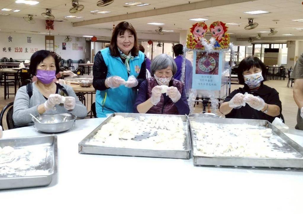 白河榮家在農曆年為家區長輩們準備包餃子食材,不僅有美味內餡,也由服務照顧人員與長輩們一起包水餃,享受過年氣氛,包好的水餃於除夕圍爐時供長輩們食用。