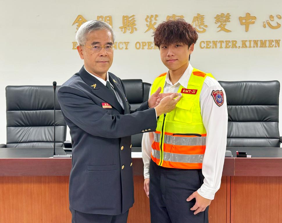 消防局說明,本次獲頒「救命之星」榮譽胸章(銀章)者,為金湖分隊隊員王宇亨、簡智田及黃志中3人;另114年度亦有火災調查科科員(時任金寧分隊隊員)許俊偉、金寧分隊隊員林誌有、許峻維、金沙分隊隊員林昶志、謝賢、金湖分隊隊員吳百翊,及金城分隊隊員蔡鴻霖、陳威杰等8名同仁獲此殊榮,充分展現本縣消防團隊的專業救護實力。
