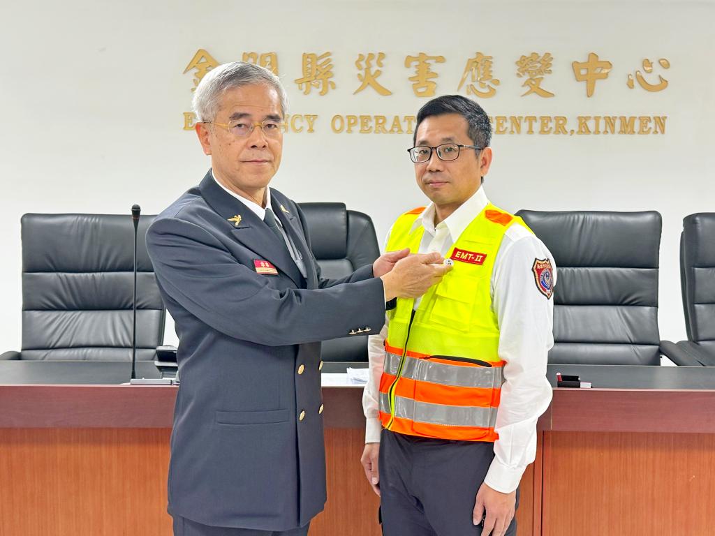 【勁報記者于郁金/金門報導】金門縣消防局於近日舉行「救命之星」榮譽胸章授章儀式,表彰在到院前緊急救護勤務中表現卓越、成功挽救生命救護人員;消防局長呂英華親自頒發榮譽胸章,肯定第一線執勤人員在生死關頭展現專業技術、勇氣與責任感。